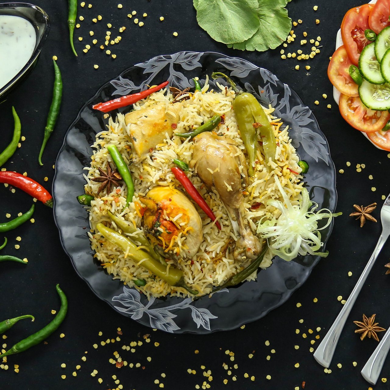 Bagara Rice with Chicken Curry
